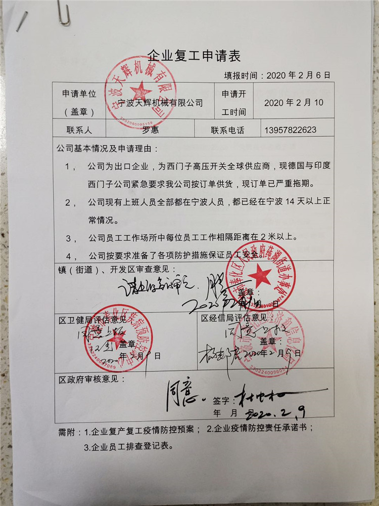 疫情當(dāng)下,我們很幸運(yùn)生活在浙江寧波奉化, 疫情被強(qiáng)有力的控制了,政府部門(mén)已同意我司復(fù)工。